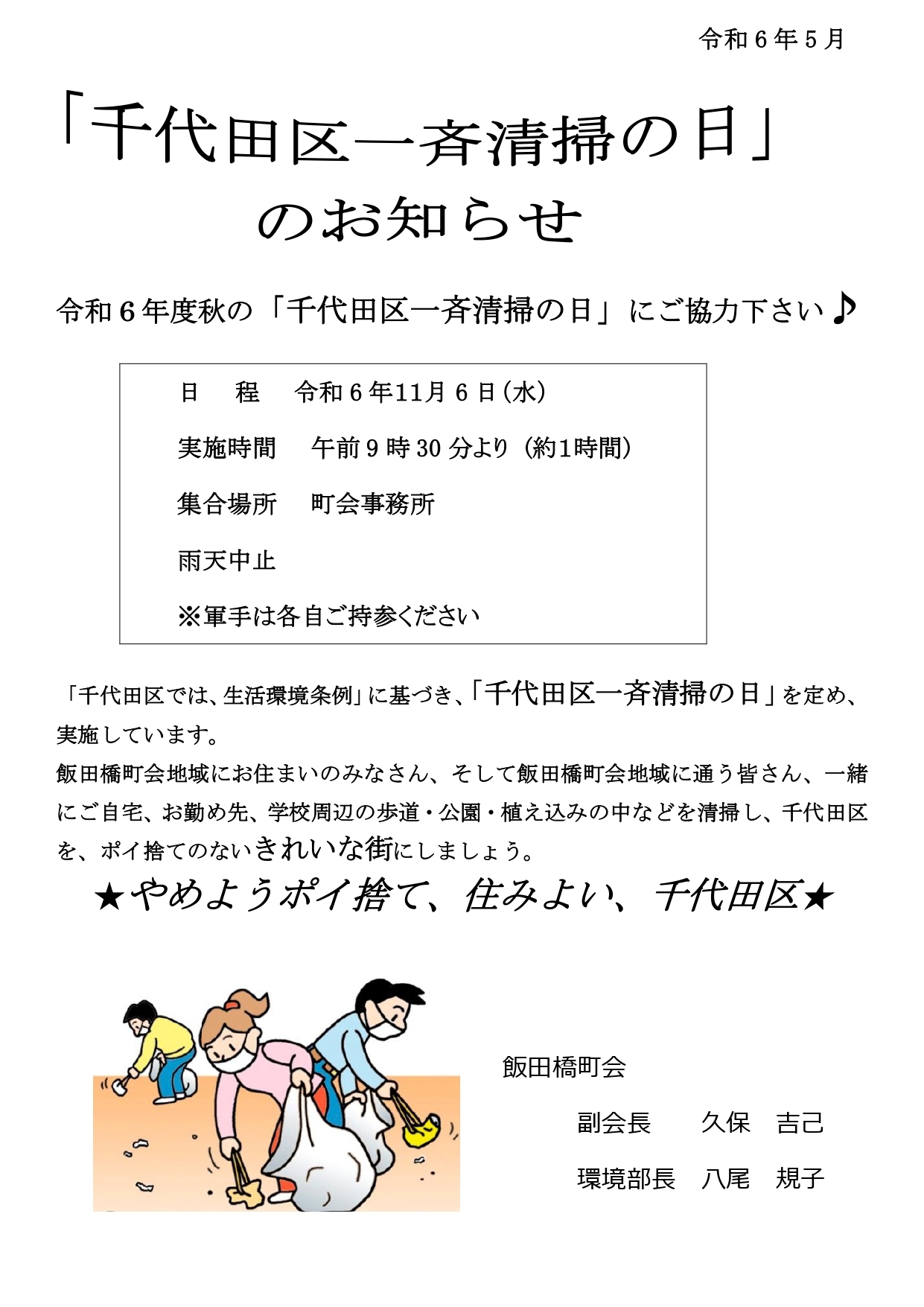 千代田区では「生活環境条例」に基づき『千代田区一斉清掃の日』を定め、実施しています。